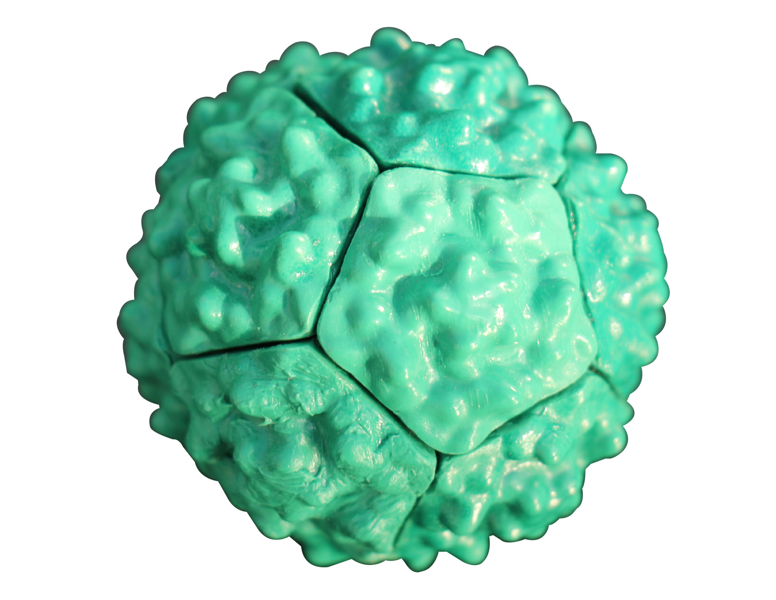 Dimensions: each virus pentamer is 2.2 cm by 2.1cm by 0.4cm. The final capsid has a 6cm diameter. The bottle is 15cm by 10cm radius.